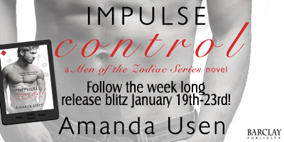 To celebrate IMPULSE CONTROL, there will be daily #giveaways on each day of the blitz! Each day THREE winners will receive a signed print copy of one of Amanda’s backlist titles (international winners will receive a digital copy). Daily drawings will be held at 4:00pm EST and winners will be announced on Amanda’s Facebook page and on Twitter.