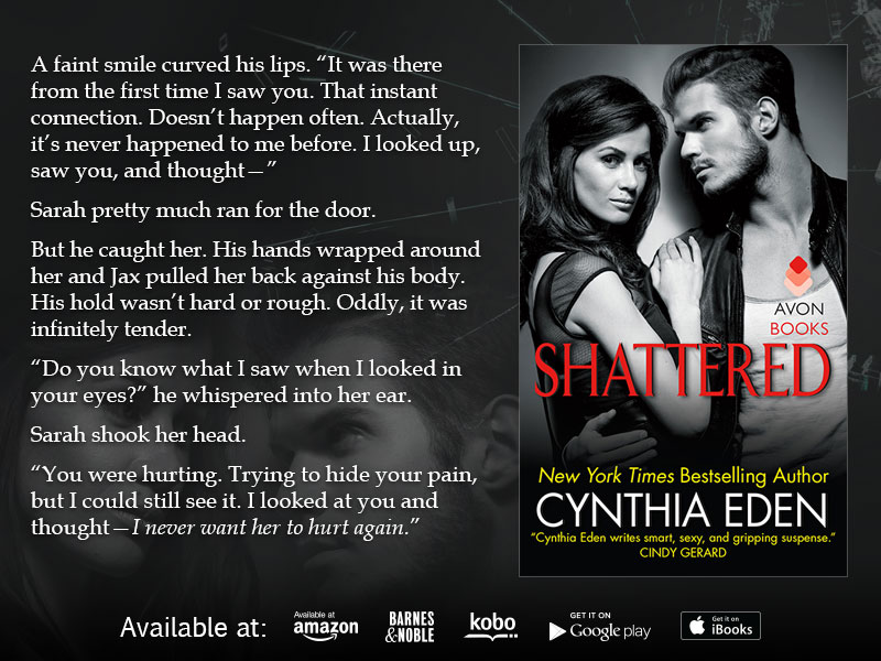 I’ve enjoyed Cynthia Eden’s LOST series. I enjoyed Broken and Twisted but couldn’t wait for Shattered. I’m always quick to pick up a book set in New Orleans, even better if the book is romantic suspense.